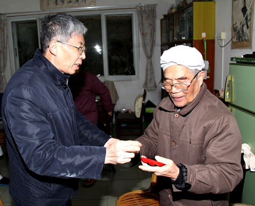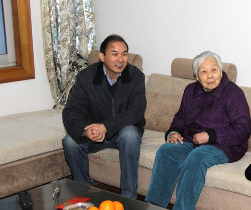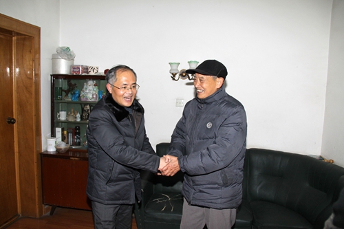 在老干部田忠仁和吳光珍家,看到兩位老同志雖然高壽,但身體健康,萬明非常高興,并表示如果他們有什么困難,可以找相關(guān)部門反映,學(xué)校將為他們排憂解難。