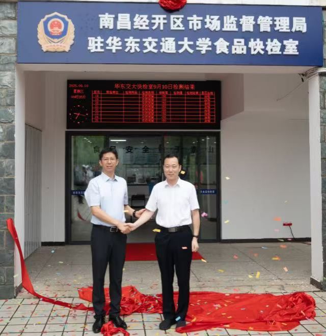 9月10日,在全國食品安全宣傳周活動之際,南昌經開區市場監督管理局駐華東交通大學食品快檢室揭牌儀式在我校舉行。南昌市市場監督管理局黨組書記、局長王瑋,我校黨委委員、副校長劉志敏出席揭牌儀式,并共同為食品快檢室揭牌。