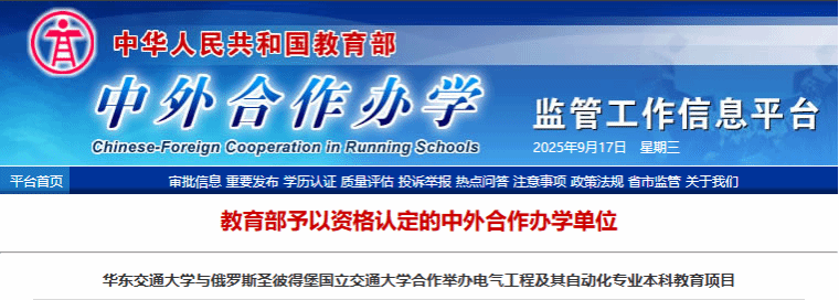 近日,教育部公布了中外合作辦學項目最新評審結果,學校與俄羅斯圣彼得堡國立交通大學合作舉辦的電氣工程及其自動化專業本科教育項目正式獲批,這是學校獲教育部批準的第三個中外合作辦學項目,對進一步加強學校學科建設,構建具備國際視野的專業人才培養體系,提升學校國際化辦學水平具有重要意義。