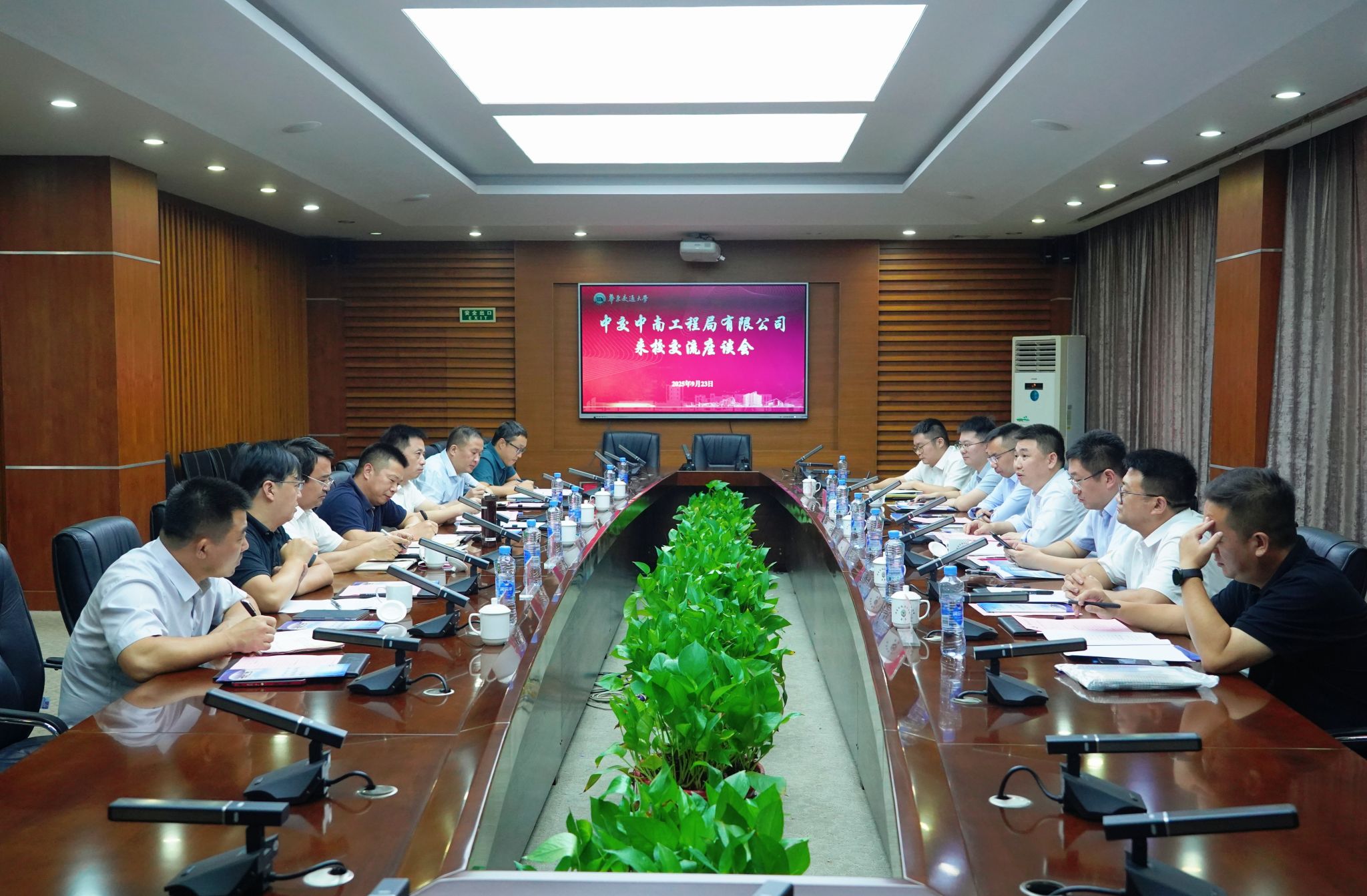 9月23日下午,中交一公局集團黨委委員、副總經理,中交中南工程局有限公司(以下簡稱“中交中南局”)黨委書記、董事長劉擁華,中交中南局黨委委員、副總經理王海濤一行來校交流。校黨委副書記、校長徐長節出席座談會并講話。校黨委委員、副校長肖乾主持。