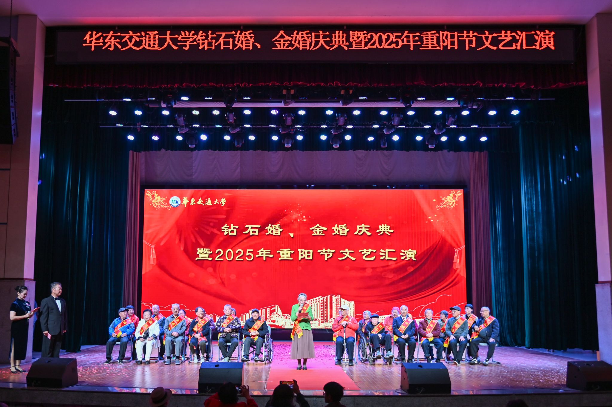 “近年來(lái),學(xué)校一系列成績(jī)的取得都離不開離退休老同志們的關(guān)心、支持與貢獻(xiàn)。”柳和生代表學(xué)校黨委向所有老同志致以崇高的敬意和衷心的感謝。他說(shuō),在這樣一個(gè)溫馨喜悅的日子里,大家共同見證12對(duì)鉆石婚、金婚夫婦的美好愛情,這種歷經(jīng)歲月而愈發(fā)璀璨的情感,不僅是個(gè)人小家庭幸福美滿的基石,更是華交大家庭家風(fēng)傳承的詮釋,祝福各位金婚、鉆石婚伉儷,在愛的旅程上繼續(xù)攜手同行,共賞霞光滿天。