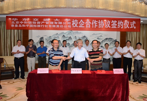 7月1日,我校與北京中和信投資產管理有限公司、秦皇島和平國際旅行社有限責任公司校企合作簽約儀式在我校舉行,三方就共同成立“華東交大和平新技術研究院”相關事宜達成共識。這標志著學校在對外合作方面又邁出新步伐。
