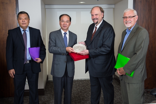 在訪問加拿大新不倫瑞克大學期間,萬明一行拜訪了加拿大工程院士、“長江學者”、全球著名新能源專家張榴晨教授。