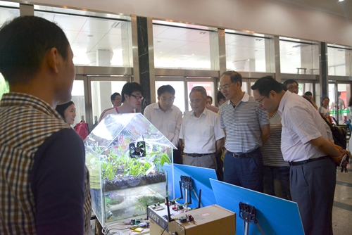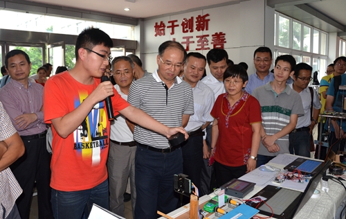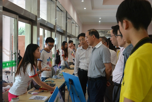 信息學院及教務處、學工處、校團委負責人參觀展覽。(攝影/秦國華、張羅發)