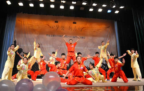 追夢(mèng)英雄,開啟新程。一首《追夢(mèng)英雄》以渾厚的嗓音傳播在禮堂,觀眾獻(xiàn)上熱烈的掌聲,全場(chǎng)的氣氛瞬間被引爆,畢業(yè)生們更是歡呼驚叫釋放畢業(yè)的激情;青春四射,真情漢子,體育學(xué)院健美操演員的每一個(gè)舞姿帶著一股剛性的力量,優(yōu)柔而堅(jiān)韌,“謝謝一路默默地陪著我,讓我擁有好故事可以說,看未來一步步來”《海闊天空》以高亢昂揚(yáng)的詞調(diào)結(jié)合離別時(shí)的不舍、釋然流入每一個(gè)觀眾的耳中,淌入心中。