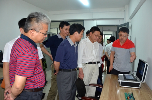 在觀摩我校大學生科技創業孵化園時,省人社廳相關部門負責人對已入駐的8個創業團隊進行了調研和指導,詢問了解了所開發產品的核心技術、市場前景和運行模式等。