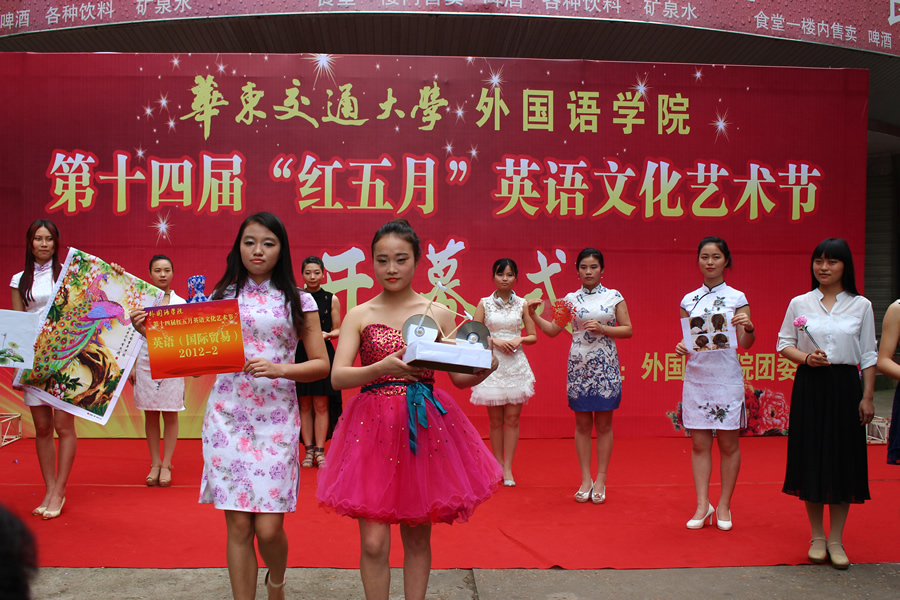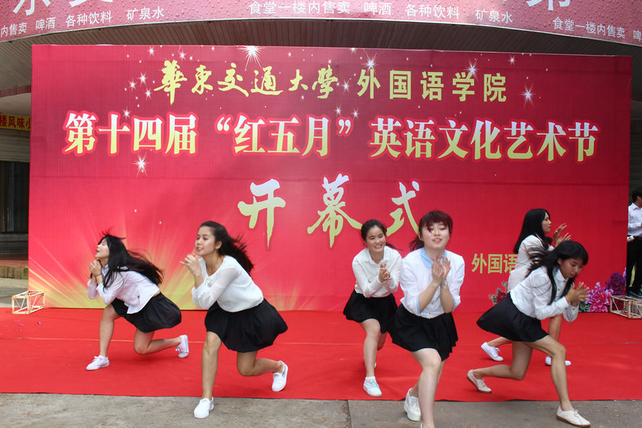 黨委副書記汪立夏講話,“外國語學(xué)院‘紅五月’英語文化藝術(shù)節(jié)是我校傳統(tǒng)特色節(jié)目,是校園文化活動中一顆璀璨的明珠,其融貫中西,以文化活動為主體,結(jié)合專業(yè)特色,凝練專業(yè)精神,體現(xiàn)大學(xué)文化,活躍大學(xué)生活,是學(xué)院辦學(xué)特色的呈現(xiàn),成為全校各學(xué)院學(xué)生進(jìn)行英語交流和文化探討的寶貴平臺。希望正值青春的學(xué)子們應(yīng)該在類似的校園文化的舞臺上積極展示自己,釋放青春的活力與精彩,展現(xiàn)當(dāng)代青年的魅力和創(chuàng)造力。” 并宣布外國語學(xué)院第十四屆“紅五月”英語文化藝術(shù)節(jié)開幕。外國語學(xué)院院長唐斌致開幕詞,學(xué)生代表13英語(國際金融)1班熊蕾發(fā)言。