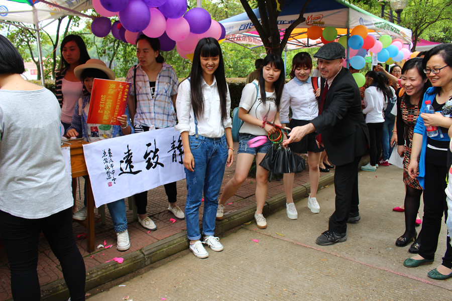 5月7日,外國語學(xué)院第十四屆“紅五月”英語文化藝術(shù)節(jié)開幕。校黨委副書記汪立夏、學(xué)工處處長楊東明、團(tuán)委書記陳沈平,外國語學(xué)院院長唐斌、黨委書記段世年、副院長劉朝武、專業(yè)老師、外教等出席。開幕式由院黨委副書記李建波主持。