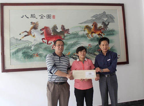 校友們向學院敬贈了湘繡《八駿全圖》,表達了對母校和老師的感恩之情,并與學校學院領導、老師合影留念。