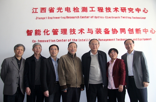 羅錫文院士、陳學庚院士等專家學者在校領導陪同下參觀了江西省光電檢測工程技術研究中心。