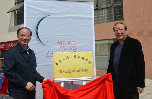 開幕式上,王林森和萬明共同為華東交通大學(xué)藝術(shù)學(xué)院當(dāng)代藝術(shù)研究所揭牌。