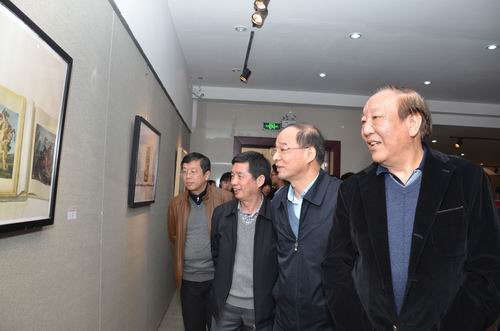 “作品的構(gòu)思是怎樣的?”“作品的色彩層次很豐富!”……王林森一行仔細(xì)地參觀參展作品。“希望你們培養(yǎng)更多的有思想的藝術(shù)人才!”王林森對(duì)我校教師給予很高期望。
