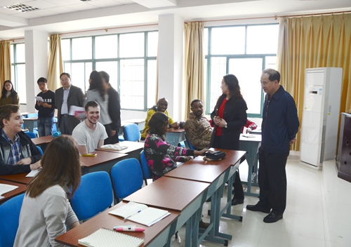 萬明說,我校要繼續大力發展留學生教育工作,要吸引更多的“金發碧眼”的學生來我校學習。他說,開展對外交流活動,不能“走過場”,在現有的基礎上,深化與國外高校的合作辦學,將我校土木、機電等特色專業搭上高鐵建設的“順風車”,讓我校的對外合作辦學更具特色。