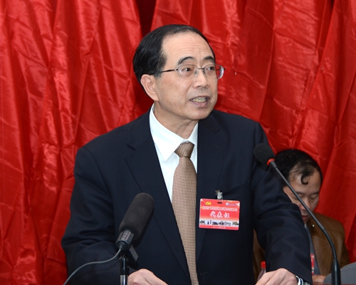 圖為校黨委委員、副校長高海生宣讀關于通過上屆黨委工作報告的決議。