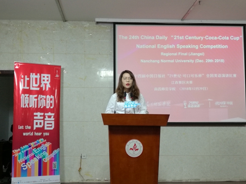 12月29日,由中國日報社、可口可樂公司主辦,江西省外語學會指導的第24屆中國日報社“21世紀?可口可樂杯”全國英語演講比賽江西賽區決賽在南昌師范學院舉行,我校選派4名選手參賽。