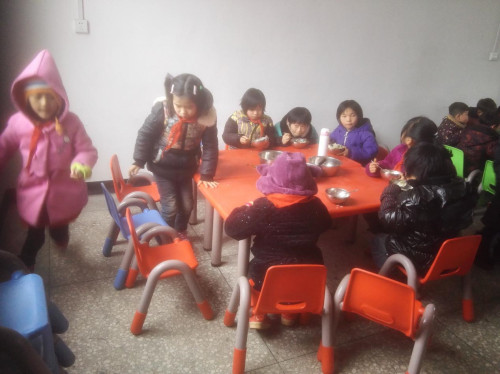 在得到項目認捐成功的消息后,軍屯小學的孩子們臉上都洋溢起了幸福的微笑。軍屯小學相關老師立即組織實施,購置了最適合孩子們吃飯使用的桌椅,現在孩子們已經可以坐著開心地吃上一頓中飯了。同時搭建洗碗間的工作也已開展,老師們爭分奪秒只為了能讓孩子們能盡快使用上相關設施,吃上一頓安穩的愛心午餐,同時不再被風吹雨淋。