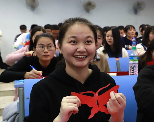 黨的十九大報告指出,要深入挖掘中華優(yōu)秀傳統(tǒng)文化蘊(yùn)含的思想觀念、人文精神、道德規(guī)范,結(jié)合時代要求繼承創(chuàng)新,讓中華文化展現(xiàn)出永久魅力和時代風(fēng)采。10月19日下午,人文學(xué)院特邀江西非物質(zhì)文化遺產(chǎn)傳承人、民間剪紙藝術(shù)家葉松清先生為2014級漢語國際教育專業(yè)全體學(xué)生,帶來一堂題為“淺談民間剪紙——傳統(tǒng)文化傳承與發(fā)展”特色剪紙藝術(shù)課,讓創(chuàng)新課堂充滿活力。