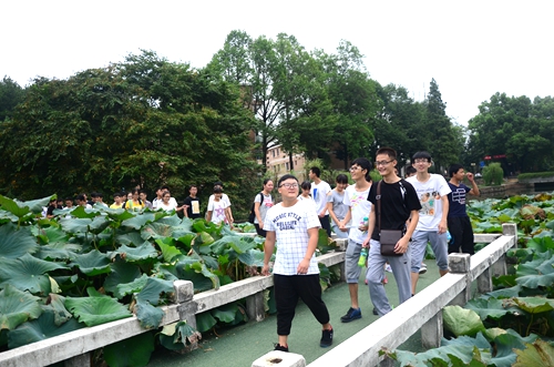 4日,志愿者化身“花椒”導游,帶領2016級新生游覽校園。途經(jīng)圖書館、養(yǎng)心湖、國防生大樓,逸夫樓,校園超市、各大食堂及實驗室等地,游園的同時還為新生答疑解惑。