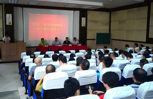 3日,信息學院于圖書館106室召開新生家長見面會,讓新生家長了解學院概況及學科建設,搭建溝通的橋梁。院領導、各系部主任以及2016級新生輔導員還一同前往學11棟和學20棟宿舍視察,了解新生住宿條件和生活狀況。