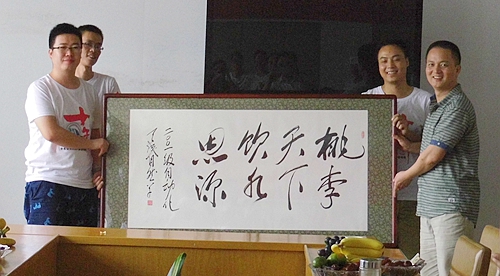 01級自動化全體同學(xué)贈予學(xué)院“桃李天下,飲水思源”書法作品,并祝愿學(xué)院發(fā)展越來越好。