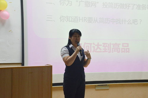 張薇薇針對(duì)“如何將簡(jiǎn)歷達(dá)到高品質(zhì)”等問(wèn)題進(jìn)行講解。她認(rèn)為,應(yīng)聘者在充分了解自己的前提下,應(yīng)該知道自己適合做什么,能做好什么,同時(shí)要有認(rèn)真的態(tài)度并且把握好“適配度”,即將企業(yè)文化、任職要求與自身“合理適配”,從而達(dá)到最佳應(yīng)聘效果。她提醒同學(xué)們,要用事實(shí)說(shuō)話,切不可無(wú)限制擴(kuò)大和虛構(gòu)個(gè)人信息。