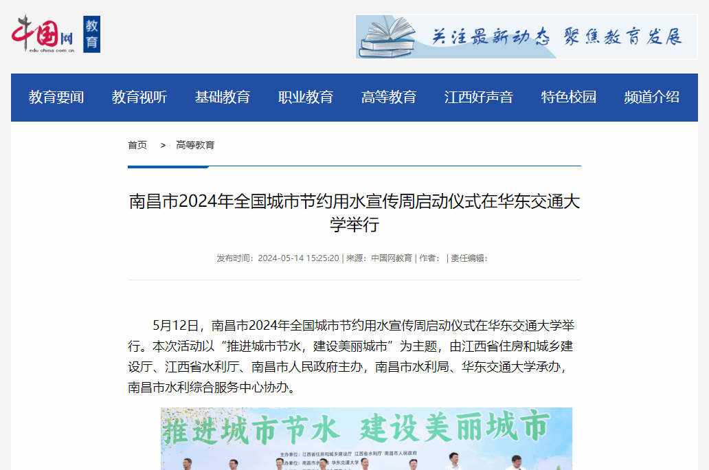 南昌市2024年全國(guó)城市節(jié)約用水宣傳周啟動(dòng)儀式在華東交通大學(xué)舉行