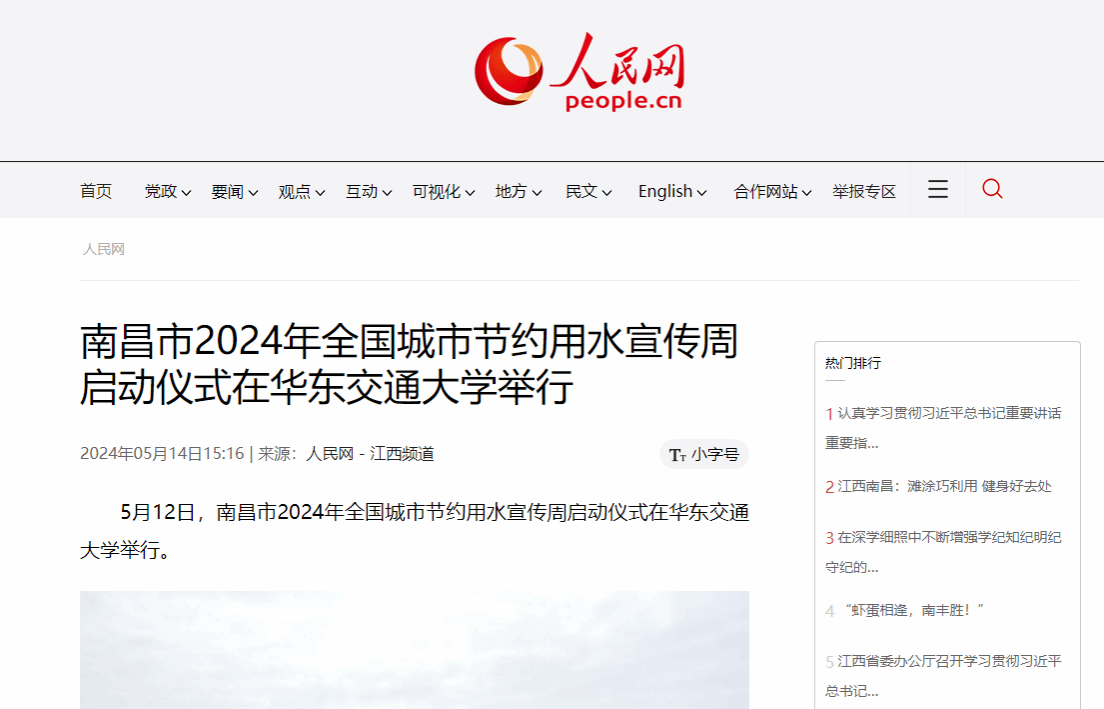 5月12日,南昌市2024年全國城市節約用水宣傳周啟動儀式在華東交通大學舉行。