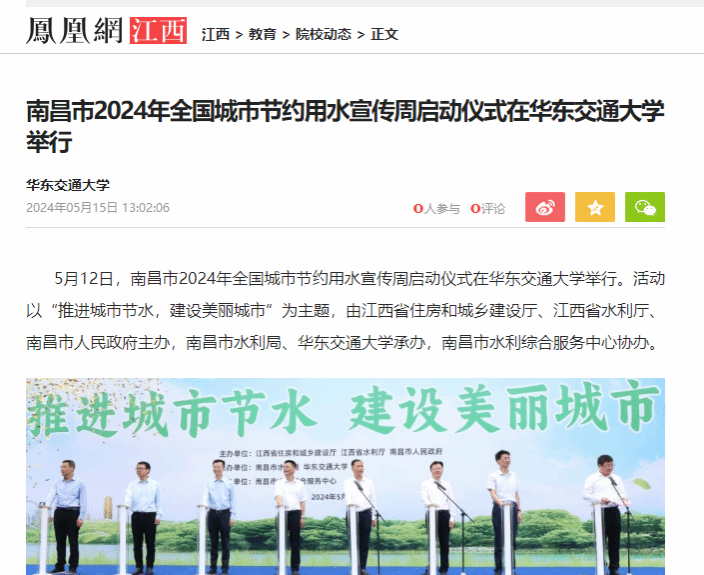 南昌市2024年全國城市節(jié)約用水宣傳周啟動儀式在華東交通大學(xué)舉行