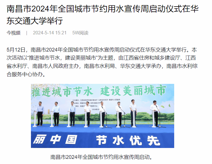 南昌市2024年全國城市節約用水宣傳周啟動儀式在華東交通大學舉行