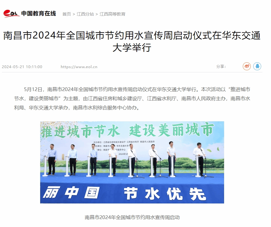 南昌市2024年全國城市節約用水宣傳周啟動儀式在華東交通大學舉行