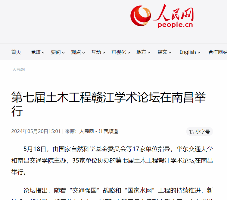 5月18日,由國家自然科學基金委員會等17家單位指導,華東交通大學和南昌交通學院主辦,35家單位協辦的第七屆土木工程贛江學術論壇在南昌舉行。