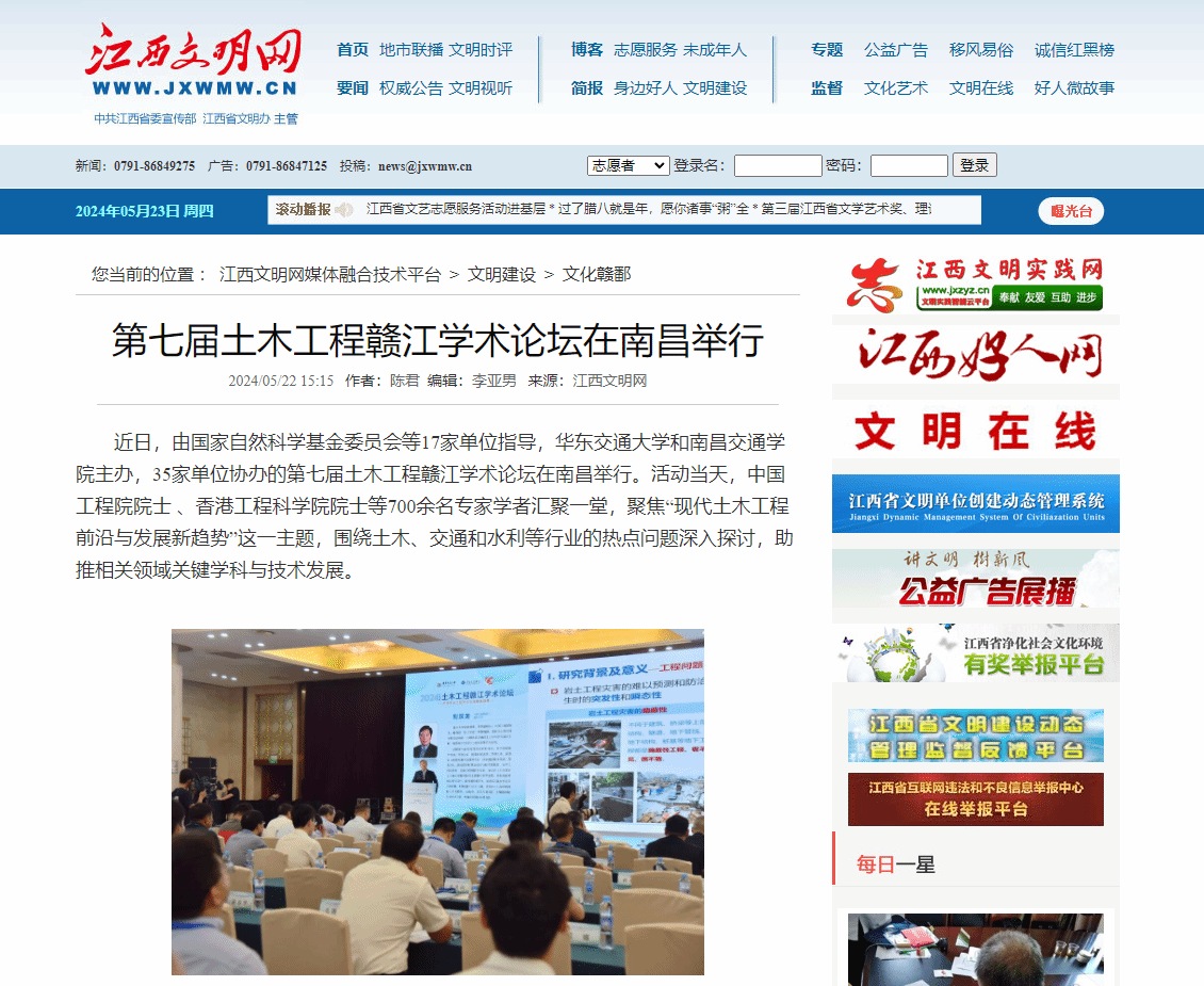 近日,由國家自然科學基金委員會等17家單位指導,華東交通大學和南昌交通學院主辦,35家單位協辦的第七屆土木工程贛江學術論壇在南昌舉行。活動當天,中國工程院院士 、香港工程科學院院士等700余名專家學者匯聚一堂,聚焦“現代土木工程前沿與發展新趨勢”這一主題,圍繞土木、交通和水利等行業的熱點問題深入探討,助推相關領域關鍵學科與技術發展。