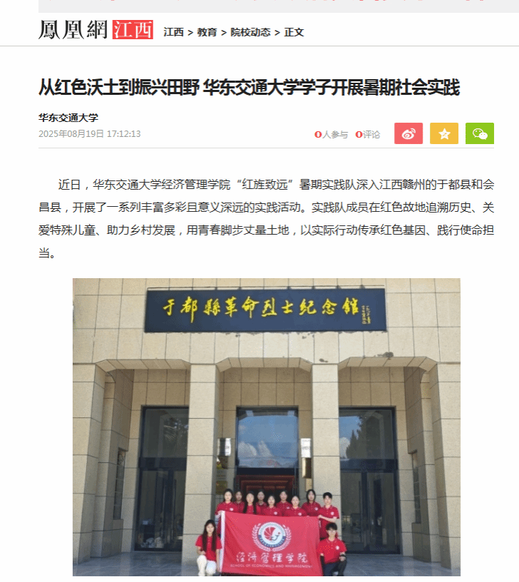 近日,華東交通大學經濟管理學院“紅旌致遠”暑期實踐隊深入江西贛州的于都縣和會昌縣,開展了一系列豐富多彩且意義深遠的實踐活動。實踐隊成員在紅色故地追溯歷史、關愛特殊兒童、助力鄉村發展,用青春腳步丈量土地,以實際行動傳承紅色基因、踐行使命擔當。