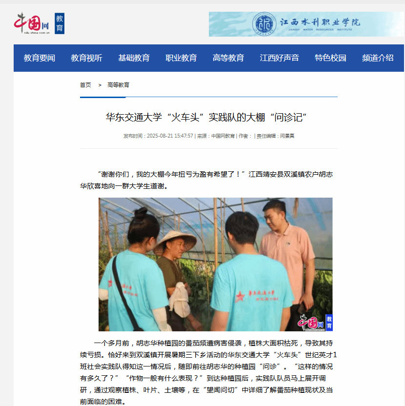 從校園到大棚,從書本到實踐,這場持續一個月的“問診”,不僅幫農戶解決了實際問題,更生動詮釋了知識的力量。未來,實踐隊將繼續發揮橋梁紐帶作用,暢通訴求反映通道,第一時間將調研實情與農民心聲向上傳遞,凝聚社會合力紓解難題,以務實行動回應鄉親們的“急難愁盼”,為繪就鄉村振興壯美畫卷貢獻青春智慧和力量。