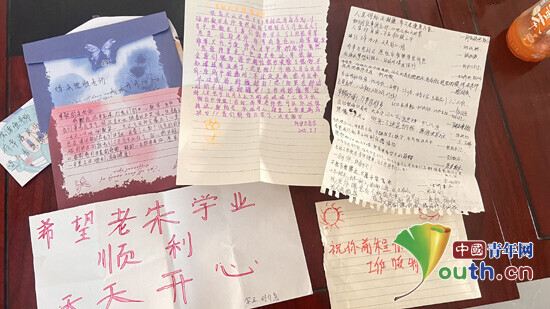 學生寫給朱德勝的留言和告別信。朱德勝供圖