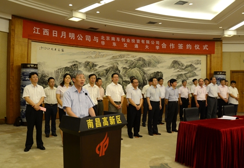 6月29日,江西日月明公司與我校及北京南車創(chuàng)業(yè)投資有限公司簽約儀式在南昌高新區(qū)管委會舉行。 江西日月明公司總經(jīng)理陶捷、我校校長雷曉燕教授、南車集團投資管理公司書記兼南車創(chuàng)投董事長趙蔚、南昌高新區(qū)黨工委...