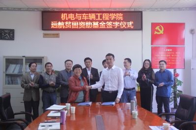 4月9日,機電與車輛工程學院遠航貧困資助基金簽字儀式舉行。對外聯(lián)絡處處長、校友工作辦公室主任、教育發(fā)展基金會理事長羅侃與江西省遠航建筑工程有限公司總經理余程校友共同簽署了《江西省遠航建筑工程有限公司—華...